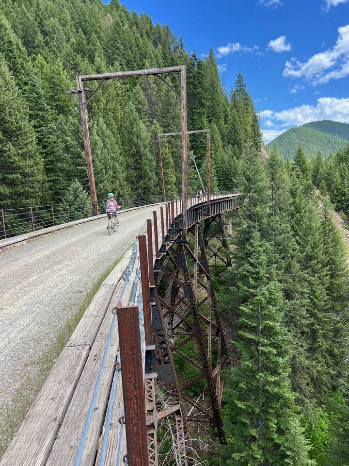 Your family will be close to everything when you stay at this centrally-located place. Short walk to Silver Mountain resort for skiing, biking,water park and much more. You can also, walk to the city park for frisbee golf, picnic, swimming and to try out the coffee shop. permit #23-10